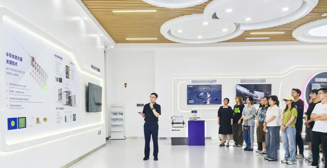活动当天,凯普林光纤事业部轮值副总冉颜绮带领学子们走进展厅和自动化生产车间,详细讲解了高功率光纤激光器的生产流程、关键工序、核心设备以及未来智能化转型愿景。“激光应用是否突破了热影响区瓶颈”“功率如何高效合束”……这些在课堂上略显抽象的理论知识,此刻在产业实践中变得鲜活而具体。