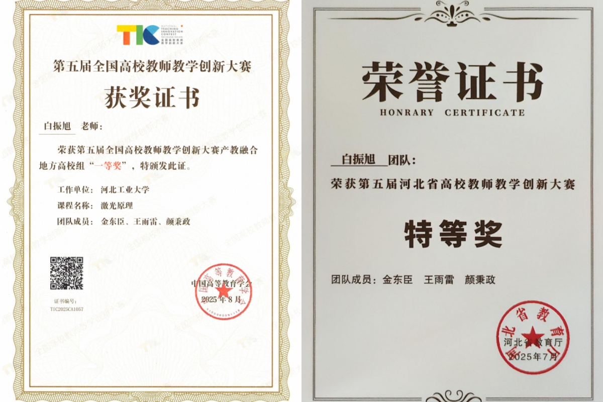 8月19日,由教育部高等教育司指导、中国高等教育学会主办的第五届全国高校教师教学创新大赛传来捷报——河北工业大学白振旭教授团队联合凯普林金东臣博士牵头的研发团队推出的《激光原理》课程,凭借“协同·共建·赋能”的产教融合创新模式,一举斩获产教融合地方高校组全国一等奖,此前该课程已荣获河北省高校教师教学创新大赛特等奖。