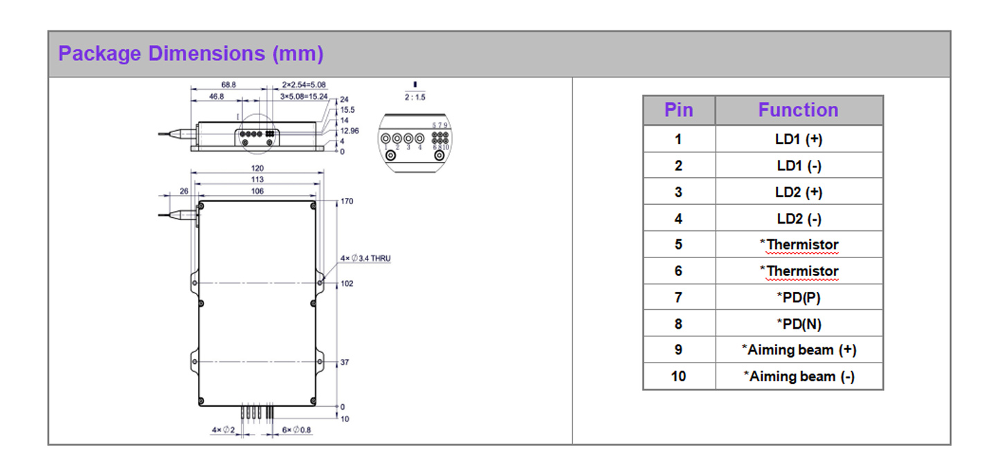 - For lasers with operating currents above 6A, connect leads by soldering. The soldering point should be as close to the middle of the pins as possible, with a temperature below 260℃ and a soldering time of less than 10 seconds.