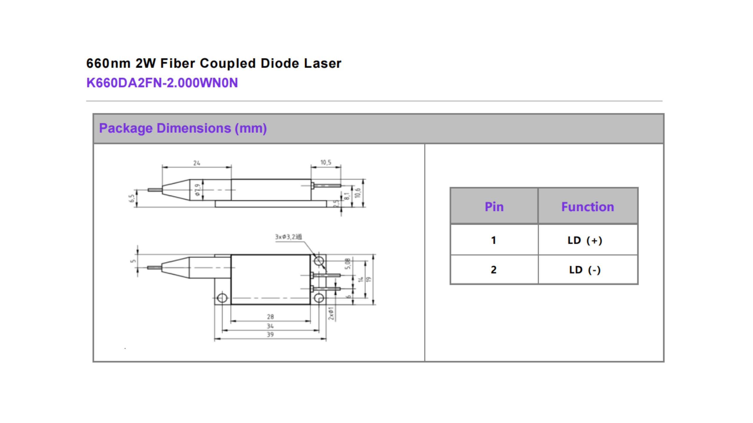 to the middle of the pins. Soldering temperature should be lower than 260℃ and time shorter than 10 second. cutting the fiber.
